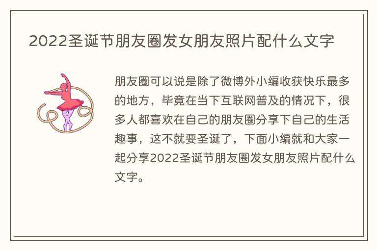 朋友圈可以说是除了微博外小编收获快乐最多的地方,毕竟在当下互联网普及的情况下,很多人都喜欢在自己的朋友圈分享下自己的生活趣事,这不就要圣诞了,下面小编就和大家一起分享2022圣诞节朋友圈发女朋友照片配什么文字。