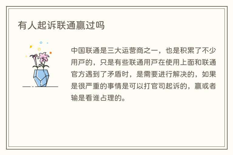有人起诉联通是赢了的,但前提是联通确实存在不当行为,且损害了用户的合法权益。法律存在的本质就是为了维护人民的合法权益,如果有需要可以准备好相关证据向法院提起诉讼。