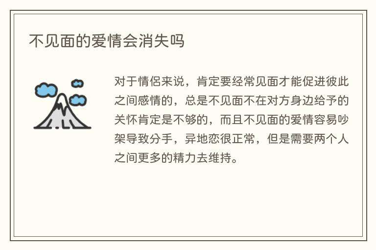 对于情侣来说,肯定要经常见面才能促进彼此之间感情的,总是不见面不在对方身边给予的关怀肯定是不够的,而且不见面的爱情容易吵架导致分手,异地恋很正常,但是需要两个人之间更多的精力去维持。