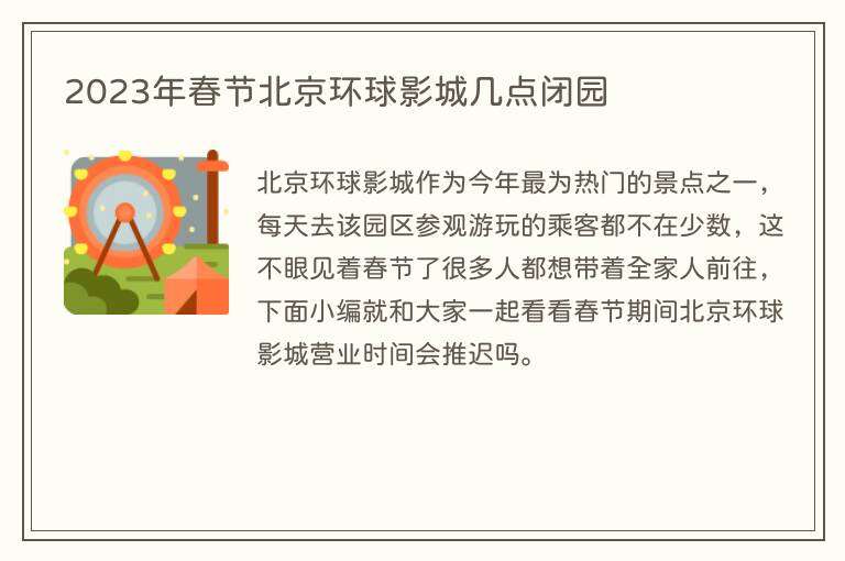 2023年春节北京环球影城几点闭园