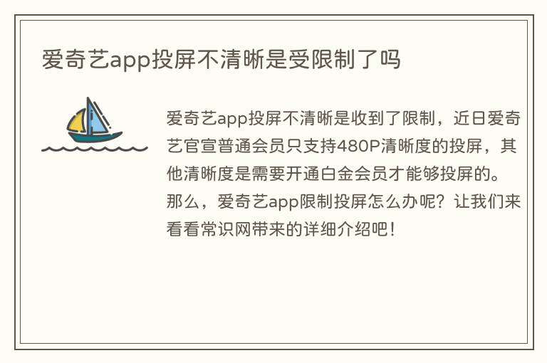 爱奇艺app投屏不清晰是收到了限制,近日爱奇艺官宣普通会员只支持480P清晰度的投屏,其他清晰度是需要开通白金会员才能够投屏的。那么,爱奇艺app限制投屏怎么办呢?让我们来看看常识网带来的详细介绍吧!