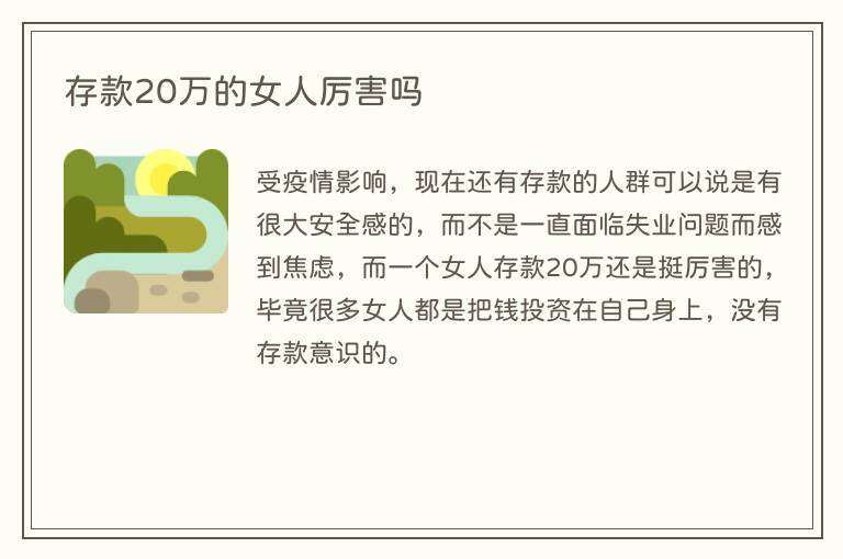 存款20万的女人厉害吗