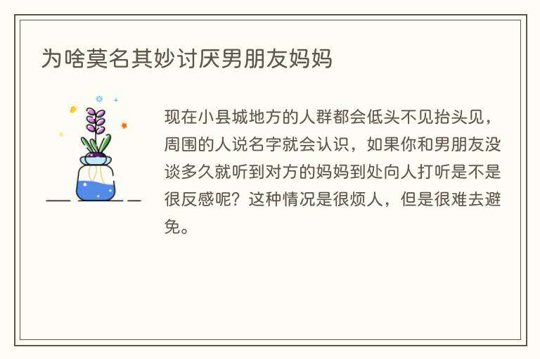 为啥莫名其妙讨厌男朋友妈妈