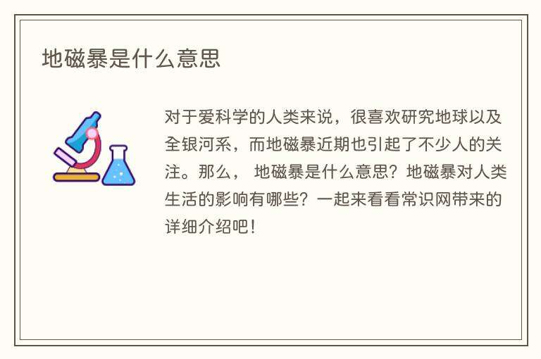 对于爱科学的人类来说,很喜欢研究地球以及全银河系,而地磁暴近期也引起了不少人的关注。那么, 地磁暴是什么意思?地磁暴对人类生活的影响有哪些?一起来看看常识网带来的详细介绍吧!