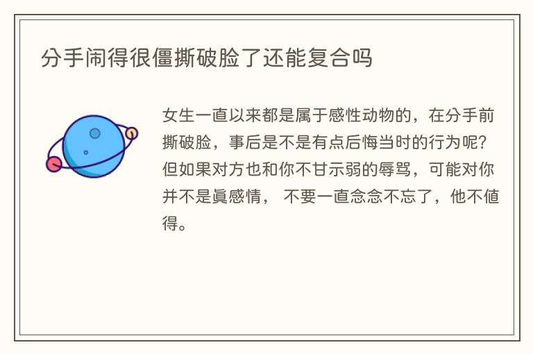 女生一直以来都是属于感性动物的,在分手前撕破脸,事后是不是有点后悔当时的行为呢?但如果对方也和你不甘示弱的辱骂,可能对你并不是真感情, 不要一直念念不忘了,他不值得。