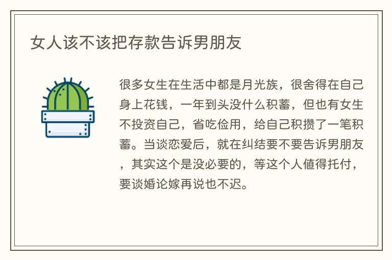 女人该不该把存款告诉男朋友