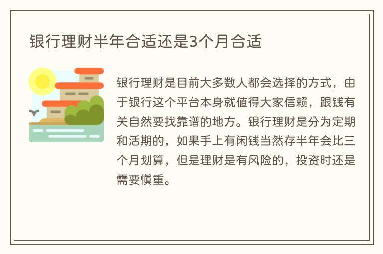 银行理财半年合适还是3个月合适