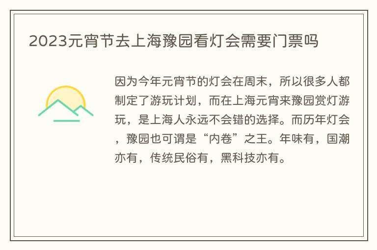 2023上海豫园灯会门票多少钱一张是很多友友问的,就去过的友友反馈是需购票的,凭票入场每人每场门票为50元正,上海豫园是很有名声的旅游景点,吸引着国内外大量的游客,看灯会走九曲桥品尝风味小吃,不亦乐呼。
