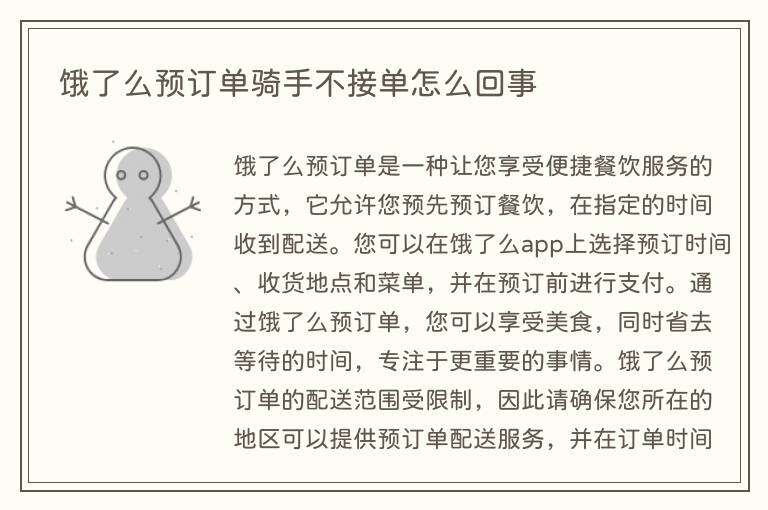 饿了么预订单骑手不接单怎么回事