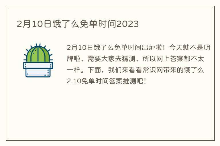2月10日饿了么免单时间出炉啦!今天就不是明牌啦,需要大家去猜测,所以网上答案都不太一样。下面,我们来看看常识网带来的饿了么2.10免单时间答案推测吧!