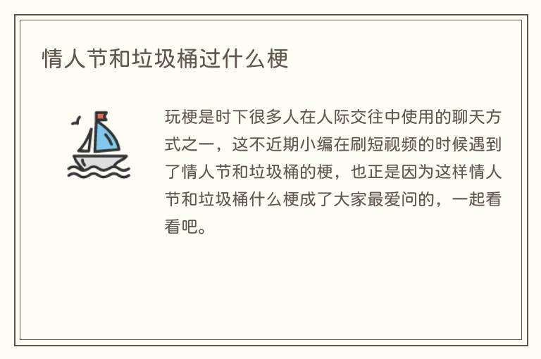 玩梗是时下很多人在人际交往中使用的聊天方式之一,这不近期小编在刷短视频的时候遇到了情人节和垃圾桶的梗,也正是因为这样情人节和垃圾桶什么梗成了大家最爱问的,一起看看吧。