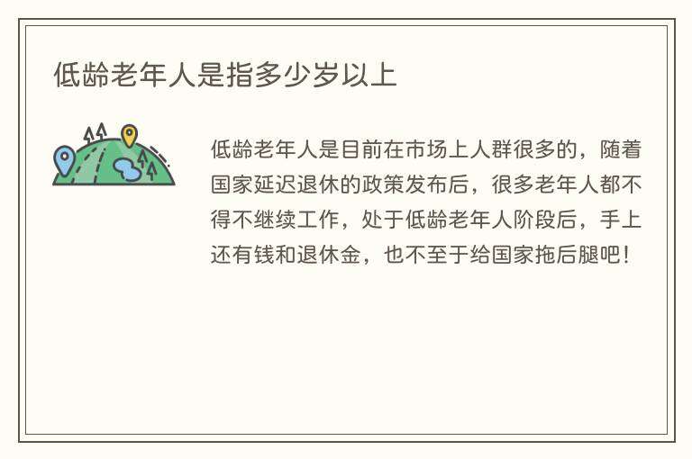 低龄老年人是指相对于传统的老年人群体而言,通常是指60岁到75岁之间的人群。但是,这个范围并不是固定的,也可以因国家、文化和社会背景的不同而有所差异。一些国家和文化将65岁或70岁定为退休年龄,因此他们可能会将这些年龄段的人视为老年人。