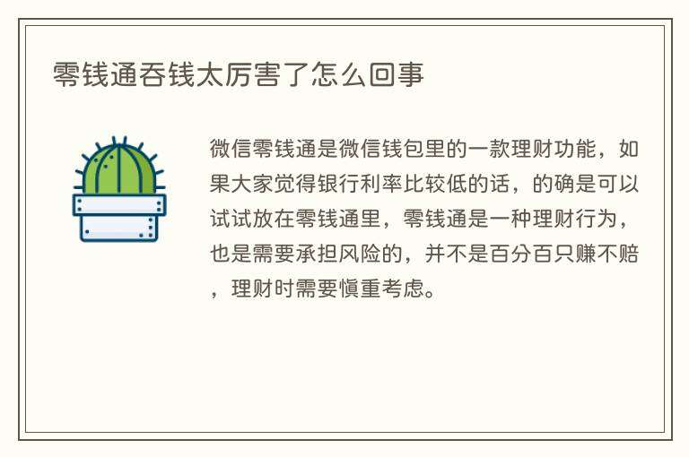 零钱通吞钱太厉害了怎么回事