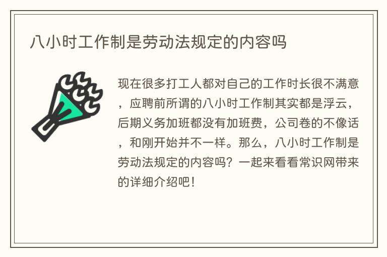 八小时工作制是劳动法规定的内容吗