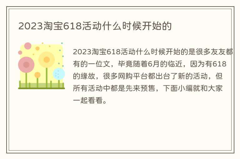 2023淘宝618活动什么时候开始