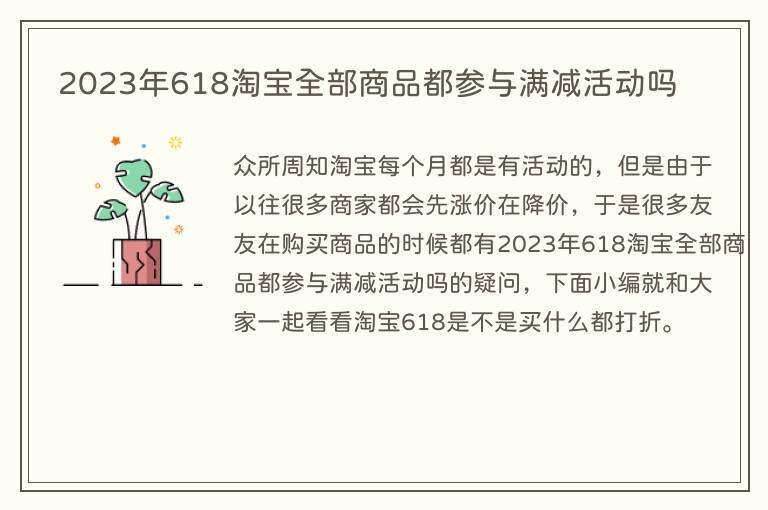 众所周知淘宝每个月都是有活动的,但是由于以往很多商家都会先涨价在降价,于是很多友友在购买商品的时候都有2023年618淘宝全部商品都参与满减活动吗的疑问,下面小编就和大家一起看看淘宝618是不是买什么都打折。
