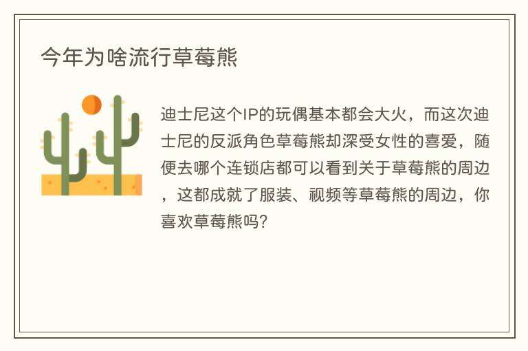 此外,草莓熊的形象和可爱的特点也符合了当下年轻人对于温暖、幸福和美好的生活情感追求,成为了一种文化符号和生活态度的象征。因此,草莓熊在今年的流行也与年轻人生活方式和审美趋势有关。