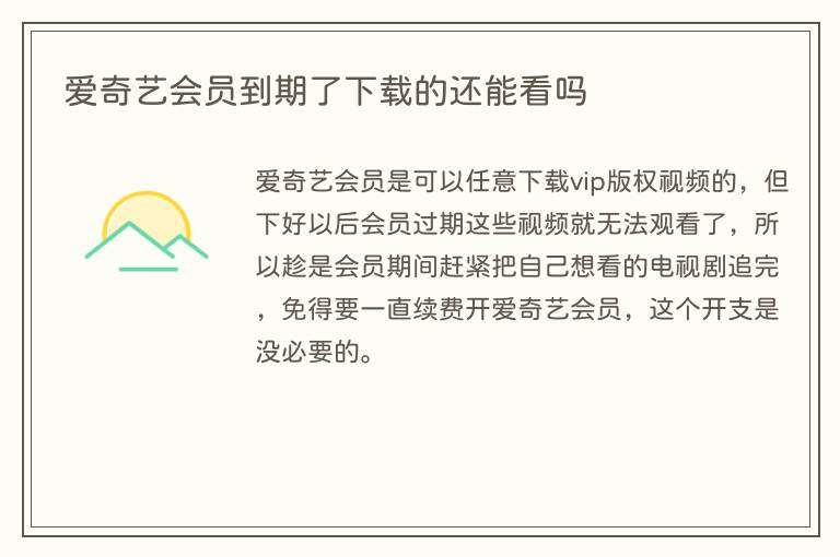 根据爱奇艺的版权限制政策,爱奇艺会员到期了之后相关的仅限会员观看的视频就无法继续观看了,其他的非会员内容仍然可以继续正常的观看。如果用户想要继续观看会员内容,只能重新续费会员。