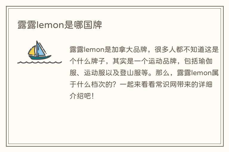 露露lemon是加拿大的品牌。该品牌的英文全名为lululemon,中文名称为露露柠檬。
