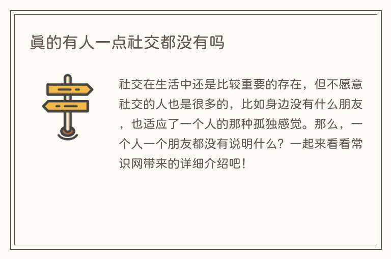 社交在生活中还是比较重要的存在,但不愿意社交的人也是很多的,比如身边没有什么朋友,也适应了一个人的那种孤独感觉。那么,一个人一个朋友都没有说明什么?一起来看看常识网带来的详细介绍吧!