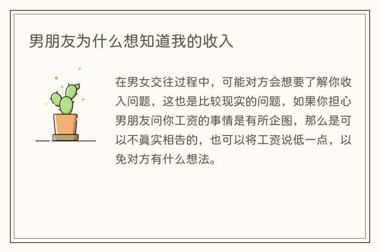 2.理财规划:男朋友可能想知道女友的收入,以便一起规划他们的理财计划和未来。