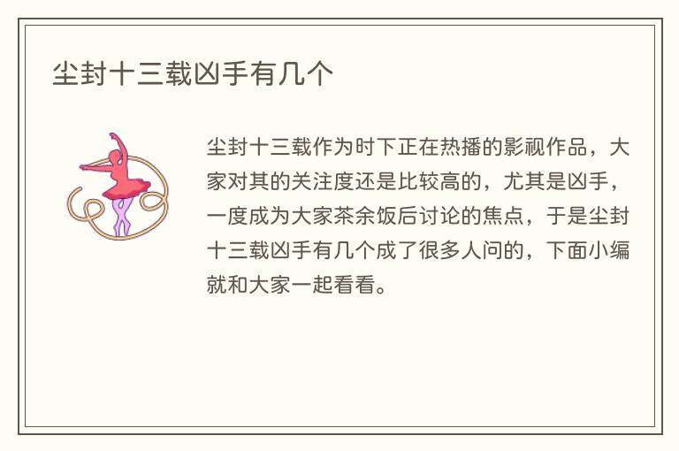 尘封十三载作为时下正在热播的影视作品,大家对其的关注度还是比较高的,尤其是凶手,一度成为大家茶余饭后讨论的焦点,于是尘封十三载凶手有几个成了很多人问的,下面小编就和大家一起看看。