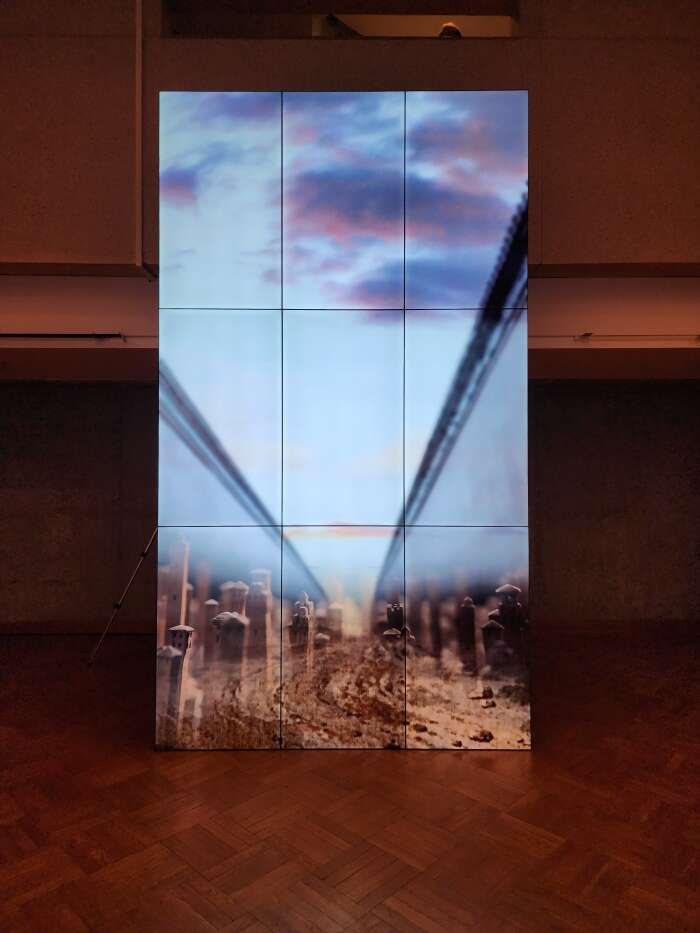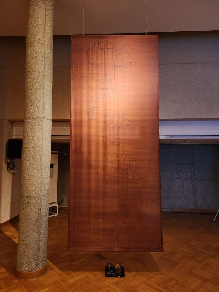 展览的旅程通过六卷人造丝绸和两个视频展开,这些作品均通过数字合成艺术技术制作。这些作品在记忆艺术的大师们的共同参与下进行对话。人造丝绸是一种允许自身被光线、阴影穿透并随之变化的微妙且难以触摸的材料,对于创作者来说,是赋予他的艺术作品形体的完美材料。这些作品源于数字,又通过数字屏幕的背光找到了自身的构成元素。