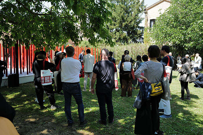 5月22日,风和日丽,绿草青青,在威尼斯经历了连日阴雨之后,第18届威尼斯国际建筑双年展中国国家馆展览迎来了开馆活动。来自策展团队、承办方、支持方等各方代表及参展建筑师、艺术家等欢聚一堂,共同庆祝中国国家馆开馆。中国国家馆策展人阮昕在发言中介绍,中国馆展览以“更新·共生”为主题,通过“宜居·传奇·百变群像”、“宜居·更新·上海故事”、“共生·未来·自然复兴”三个章节,用近40年来变化中的人居环境映射,从城市、自然与人民的视角,讲述一个独特的中国故事。展览以线上展的方式同步展出,观众可通过扫码,在掌上云展厅导览、观摩和体验每一件展品。