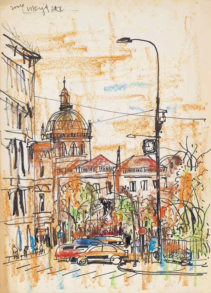 陈钧德,《捷克街景》,纸本油画棒,54 × 39 cm,2004