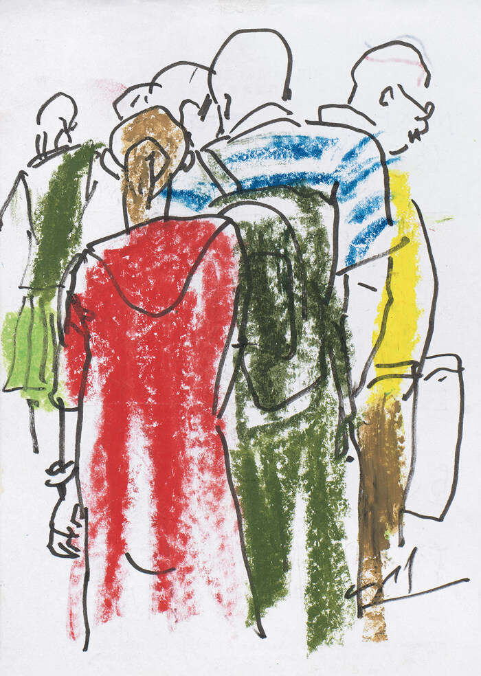 陈钧德,《机场随笔》,纸本油画棒,15 × 10cm,2008