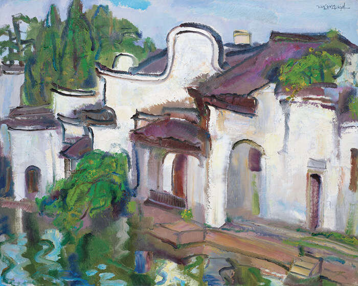 陈钧德,《白墙青瓦图》,布面油彩,80 × 100 cm,2008