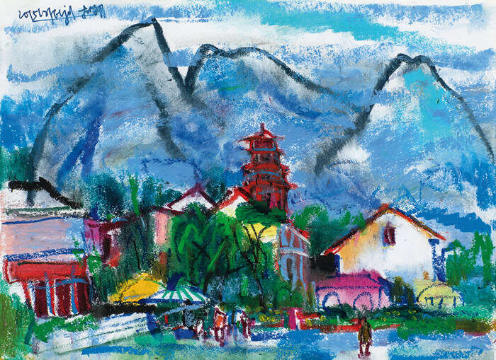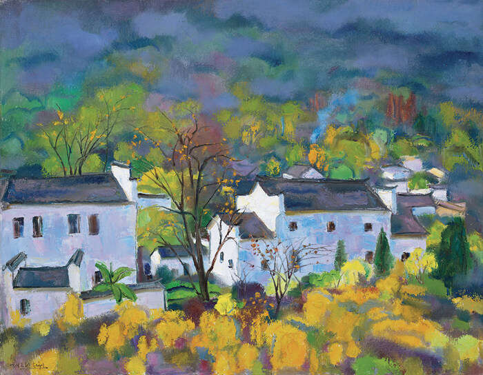 陈钧德,《云南大理周城镇》,布面油彩,70 × 60 cm,1986