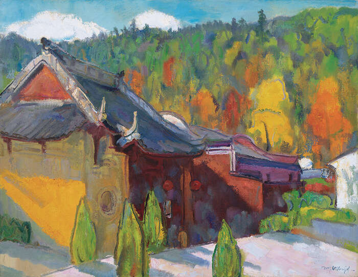 陈钧德,《禅院古刹天目山》,布面油彩,116 × 90 cm,2007
