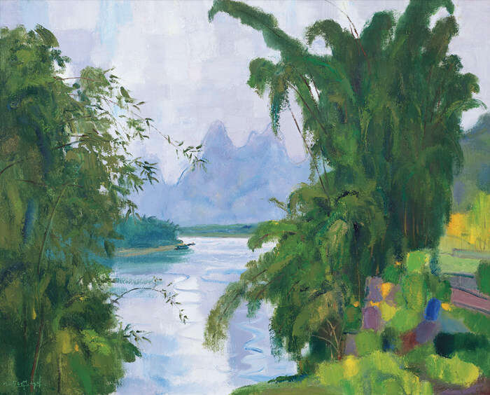 陈钧德,《阳朔秋烟》,纸本油画棒,29.5 × 40 cm,2015