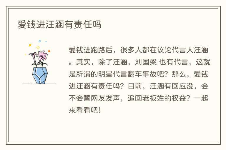爱钱进汪涵有责任吗