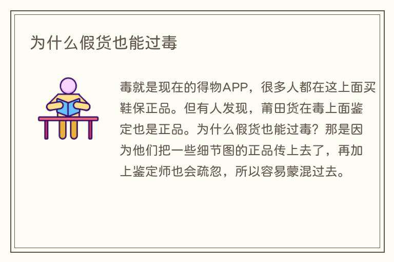 毒就是现在的得物APP,很多人都在这上面买鞋保正品。但有人发现,莆田货在毒上面鉴定也是正品。为什么假货也能过毒?那是因为他们把一些细节图的正品传上去了,再加上鉴定师也会疏忽,所以容易蒙混过去。