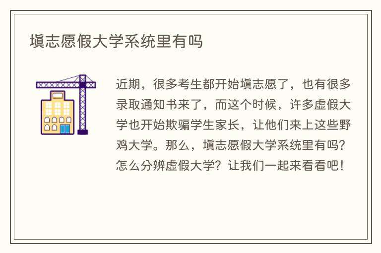 近期,很多考生都开始填志愿了,也有很多录取通知书来了,而这个时候,许多虚假大学也开始欺骗学生家长,让他们来上这些野鸡大学。那么,填志愿假大学系统里有吗?怎么分辨虚假大学?让我们一起来看看吧!