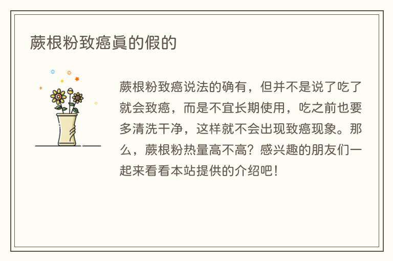 蕨根粉致癌说法的确有,但并不是说了吃了就会致癌,而是不宜长期使用,吃之前也要多清洗干净,这样就不会出现致癌现象。那么,蕨根粉热量高不高?感兴趣的朋友们一起来看看本站提供的介绍吧!