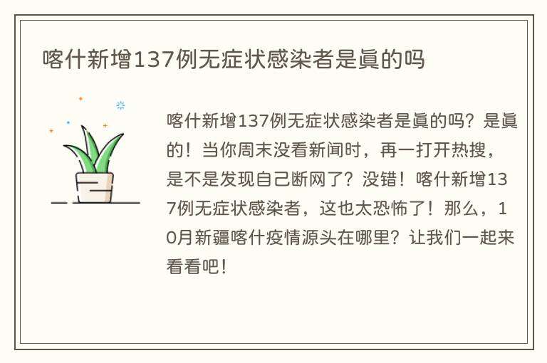 喀什新增137例无症状感染者是真的吗?是真的!当你周末没看新闻时,再一打开热搜,是不是发现自己断网了?没错!喀什新增137例无症状感染者,这也太恐怖了!那么,10月新疆喀什疫情源头在哪里?让我们一起来看看吧!