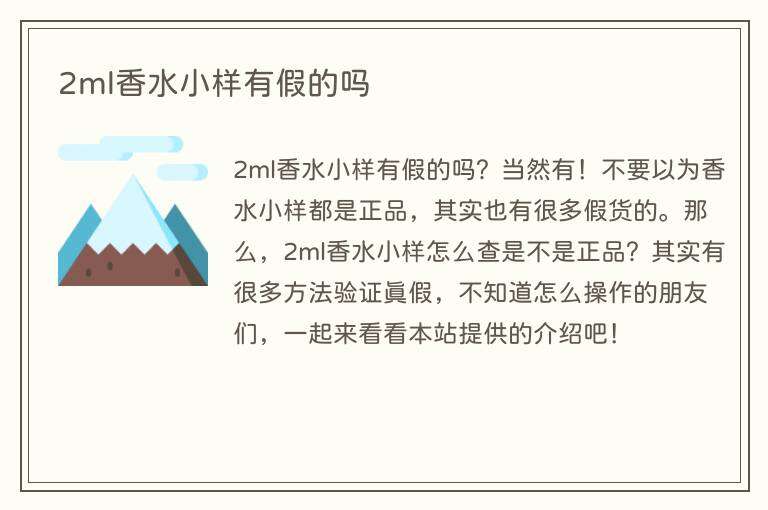2ml香水小样有假的吗?当然有!不要以为香水小样都是正品,其实也有很多假货的。那么,2ml香水小样怎么查是不是正品?其实有很多方法验证真假,不知道怎么操作的朋友们,一起来看看本站提供的介绍吧!
