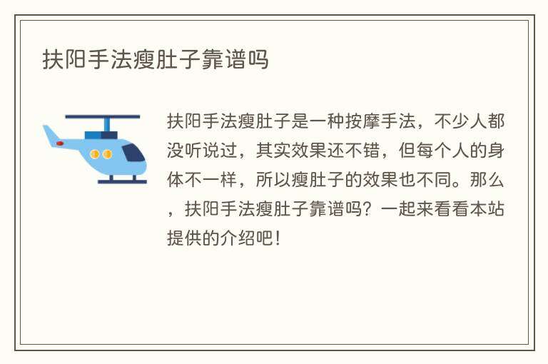 扶阳手法瘦肚子是一种按摩手法,不少人都没听说过,其实效果还不错,但每个人的身体不一样,所以瘦肚子的效果也不同。那么,扶阳手法瘦肚子靠谱吗?一起来看看本站提供的介绍吧!
