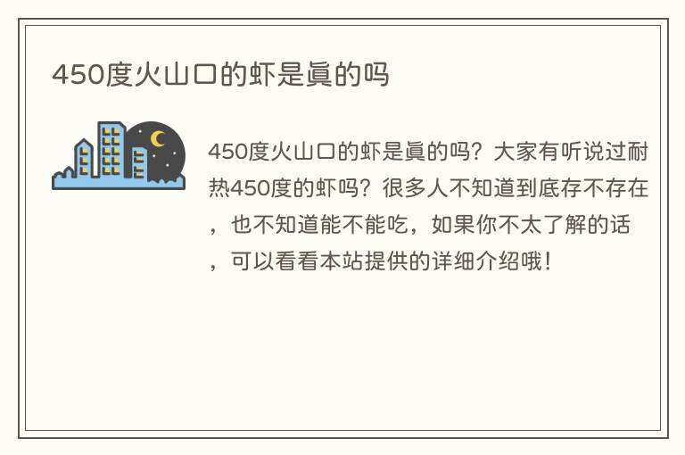 450度火山口的虾是真的吗?大家有听说过耐热450度的虾吗?很多人不知道到底存不存在,也不知道能不能吃,如果你不太了解的话,可以看看本站提供的详细介绍哦!