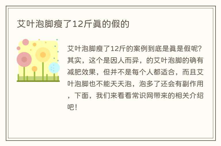 一、艾叶泡脚瘦了12斤真的假的