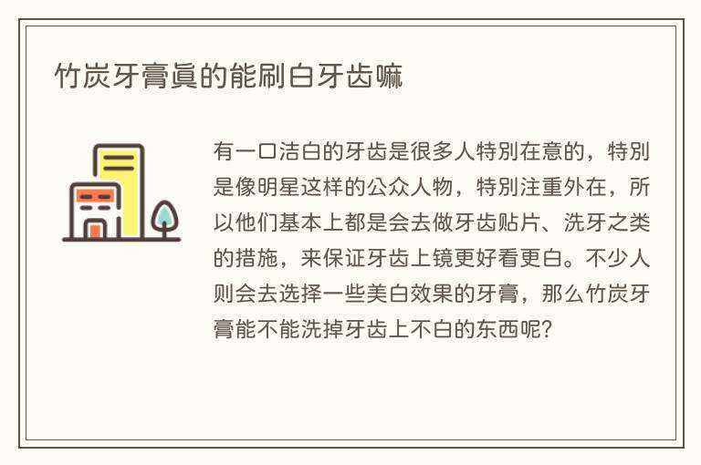 有一口洁白的牙齿是很多人特别在意的,特别是像明星这样的公众人物,特别注重外在,所以他们基本上都是会去做牙齿贴片、洗牙之类的措施,来保证牙齿上镜更好看更白。不少人则会去选择一些美白效果的牙膏,那么竹炭牙膏能不能洗掉牙齿上不白的东西呢?