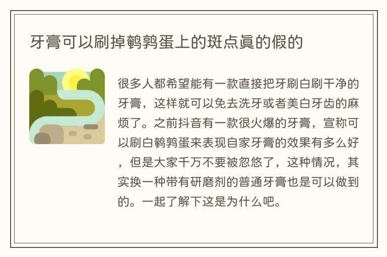 牙膏可以刷掉鹌鹑蛋上的斑点真的假的