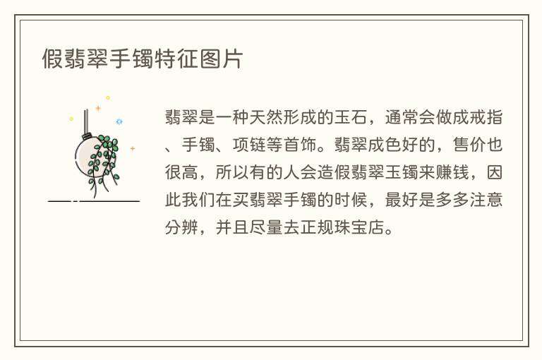 翡翠是一种天然形成的玉石,通常会做成戒指、手镯、项链等首饰。翡翠成色好的,售价也很高,所以有的人会造假翡翠玉镯来赚钱,因此我们在买翡翠手镯的时候,最好是多多注意分辨,并且尽量去正规珠宝店。