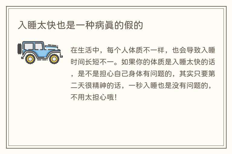 入睡太快也是一种病真的假的