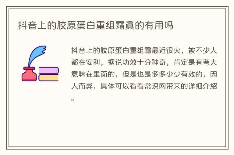 抖音上的胶原蛋白重组霜最近很火,被不少人都在安利,据说功效十分神奇,肯定是有夸大意味在里面的,但是也是多多少少有效的,因人而异,具体可以看看常识网带来的详细介绍。