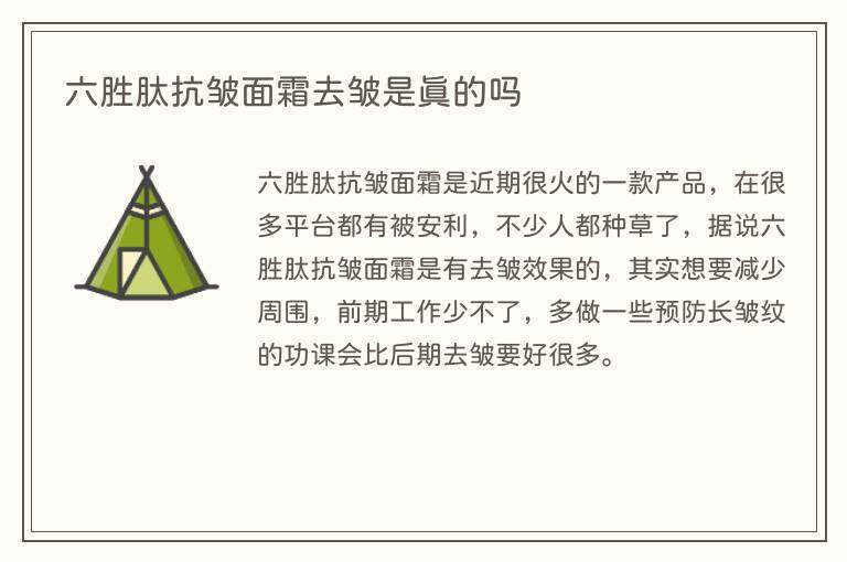 六胜肽抗皱面霜去皱是真的吗