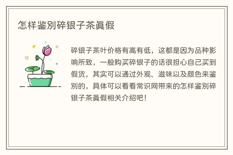 碎银子茶叶价格有高有低,这都是因为品种影响所致,一般购买碎银子的话很担心自己买到假货,其实可以通过外观、滋味以及颜色来鉴别的,具体可以看看常识网带来的怎样鉴别碎银子茶真假相关介绍吧!